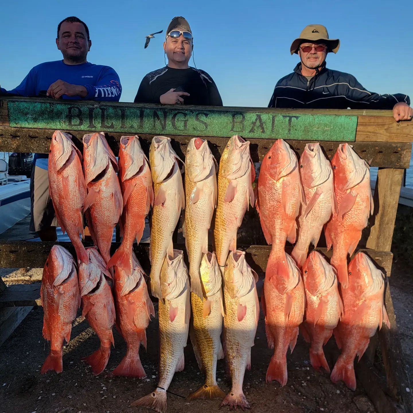 When it comes to fishing in the Gulf, most savvy anglers know fishing in the WINTER is the winning ticket- at least if you’re bottom fishing for RED SNAPPER. Our success rate for snappers is extremely high in the winter, November thru March. The colder the better. Offshore fishing is done between 15 and 30 miles, depending on the fish. We are fishing shipwrecks, oil rigs and rock piles. Why wait for federal snapper season, when the state allows you to